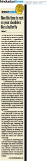 Life; a butterfly! my entry in today's Inner voice column in Hindustan Times (25/6/15)
